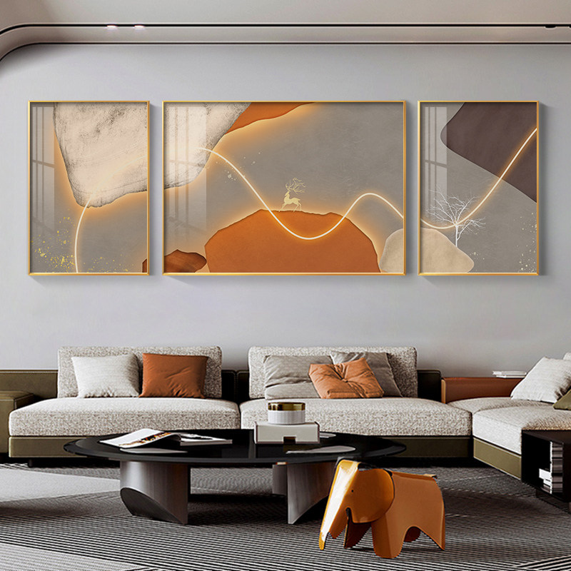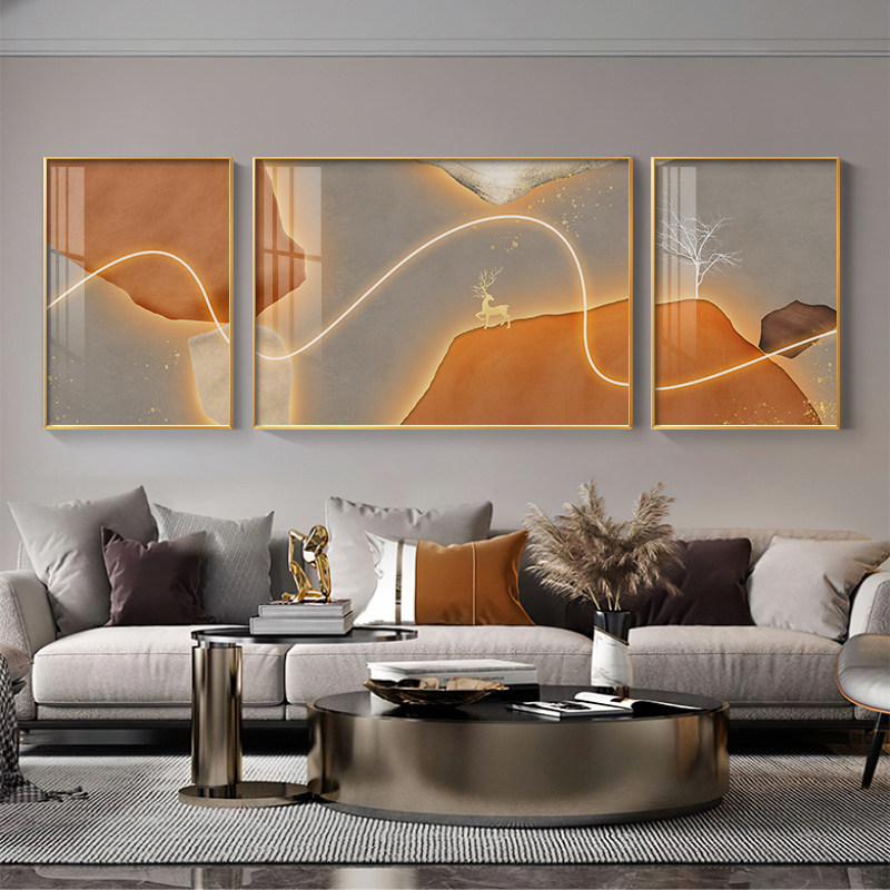 Living Room Decoration Painting High-end Light Lavish Sofa Background Wall Hanging Painting Abstract Elk Restaurant Mural Room Crystal Porcelain Painting-Taobao
