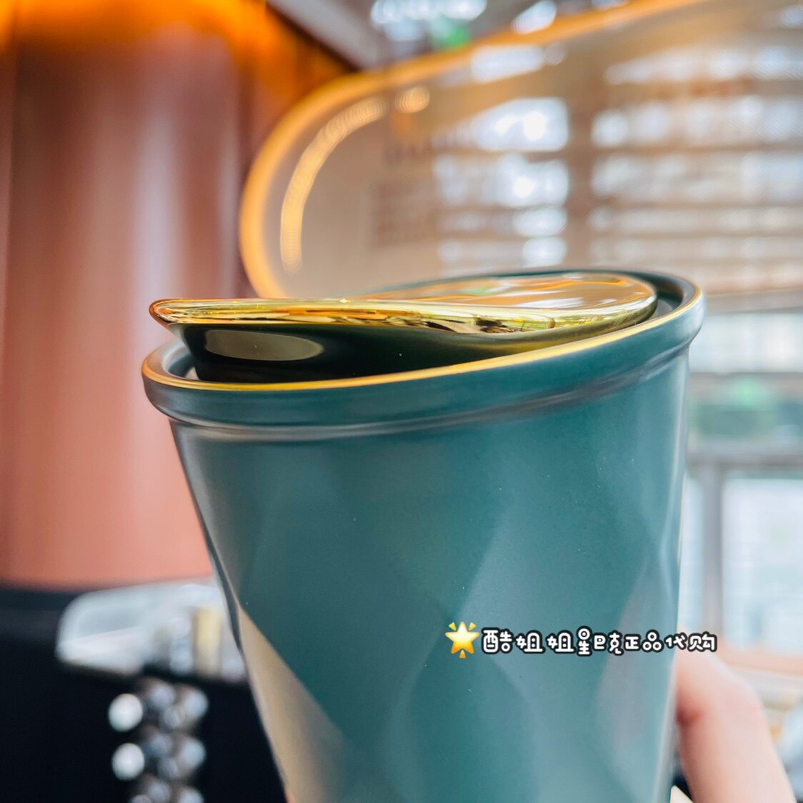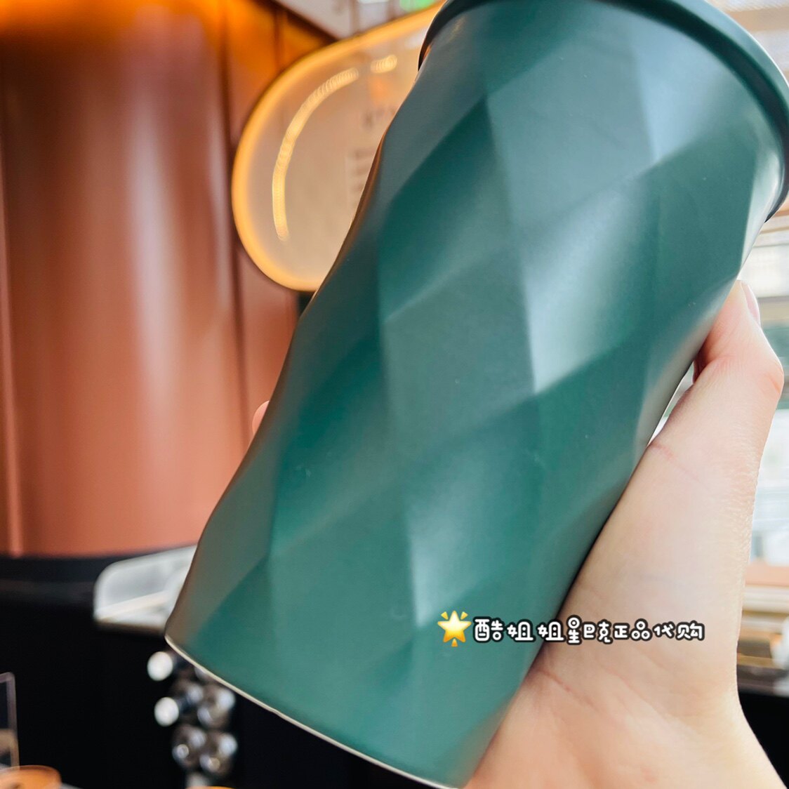Starbucks 2022 Valentine's Day Gift Classic Green Stereo Rhombus Goddess Nameplate Drinking Cup Gold Covered Mug