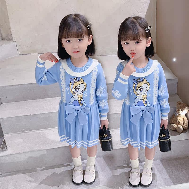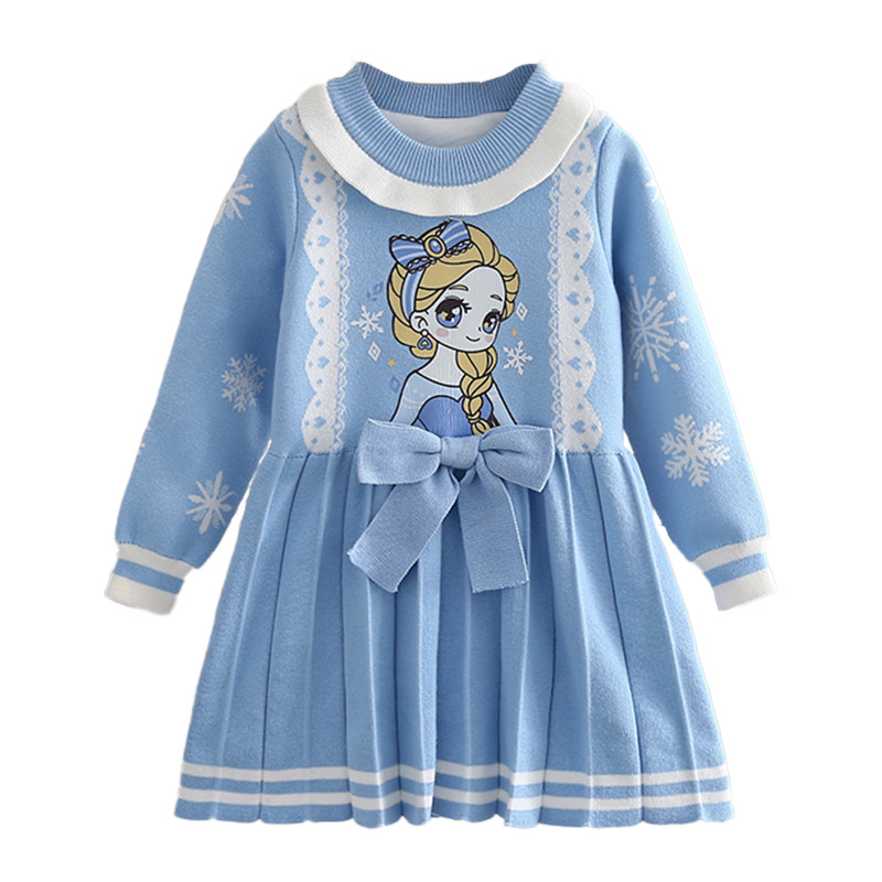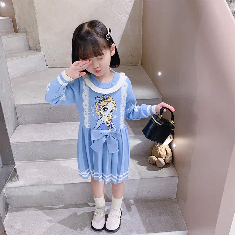 Ice and snow chic children Aesha princess dresses girl Aisha sweater knit foreign dress plus suede dress Birthday Gown