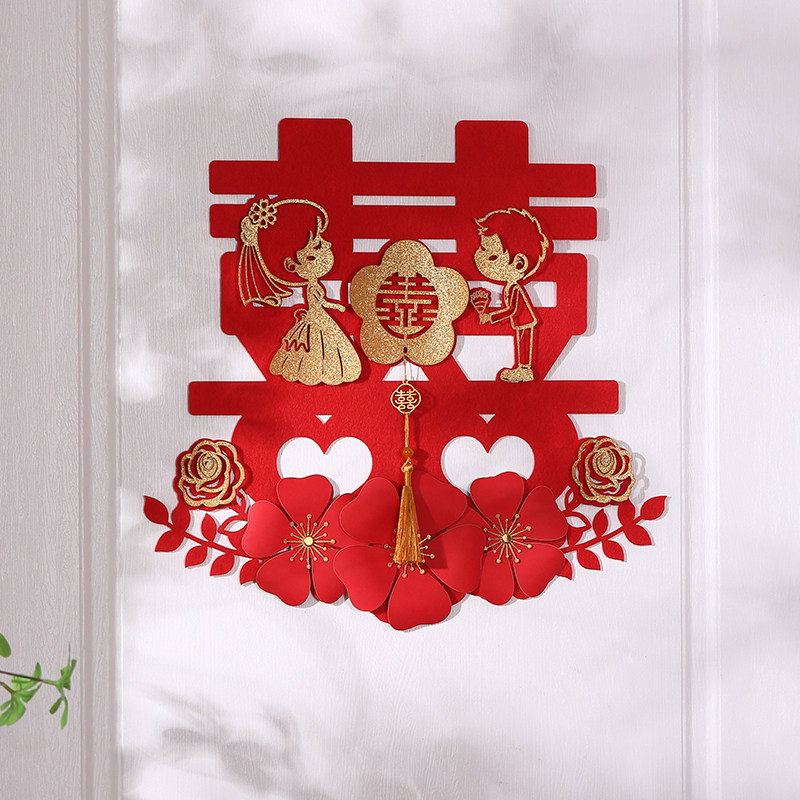 Happy character sticker wedding exclusive wedding house arrangement decorated with male and female Fang gate room door Double Calligraphy Wedding Celebration Supplies Grand Total