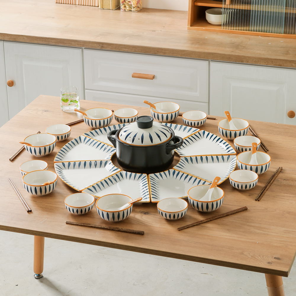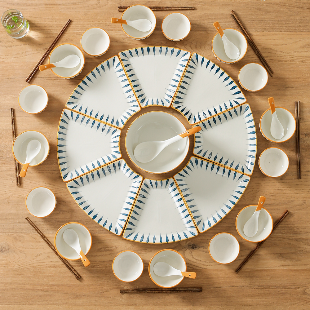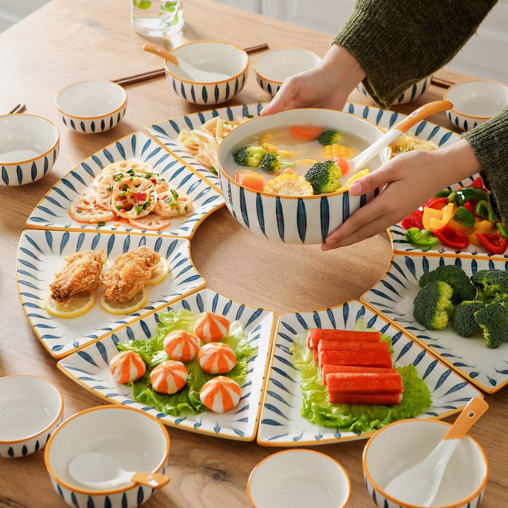 Ceramic Platter Tableware Combination Set Chinese New Year Home Creative Plate Vegetable Plate New Year's Eve Dinner Family Hot Pot Dinner Plate