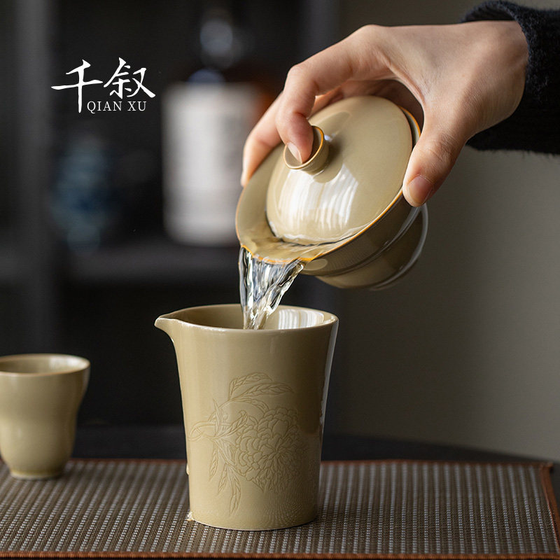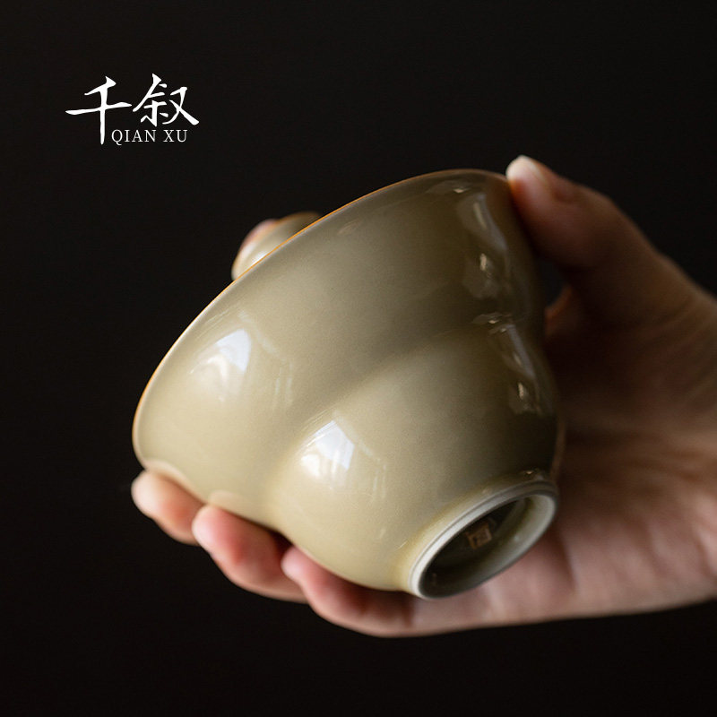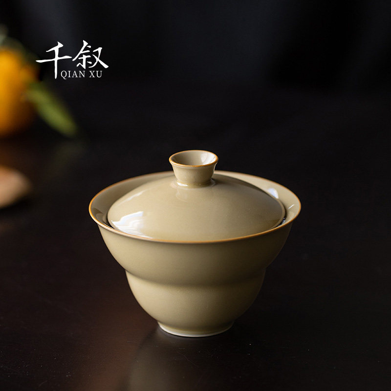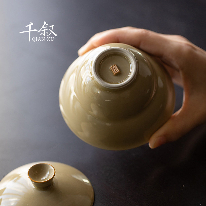 Grass ash cover bowl tea cup single large ceramic tea set household non-hot tea bowl high-end gourd kung fu tea