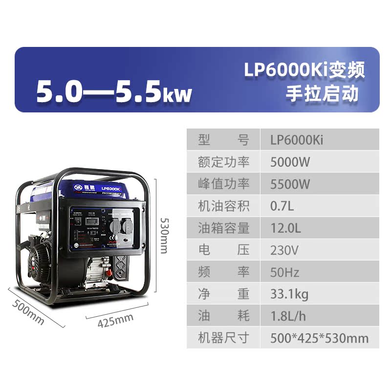 Longpeng gasoline generator 220v single-phase small household 5kw frequency conversion commercial emergency outdoor construction portable