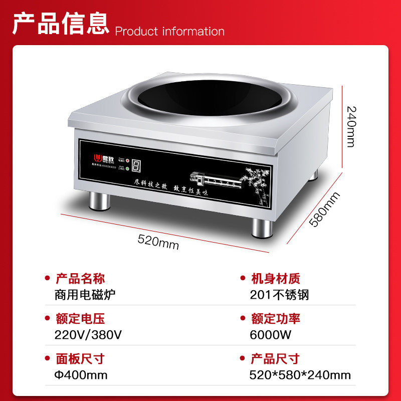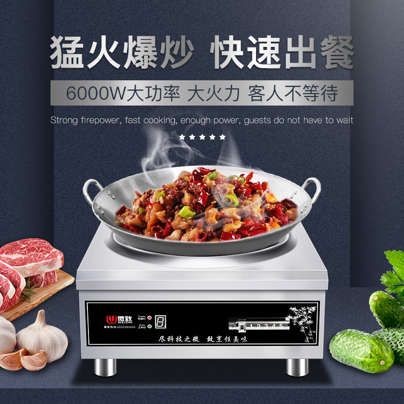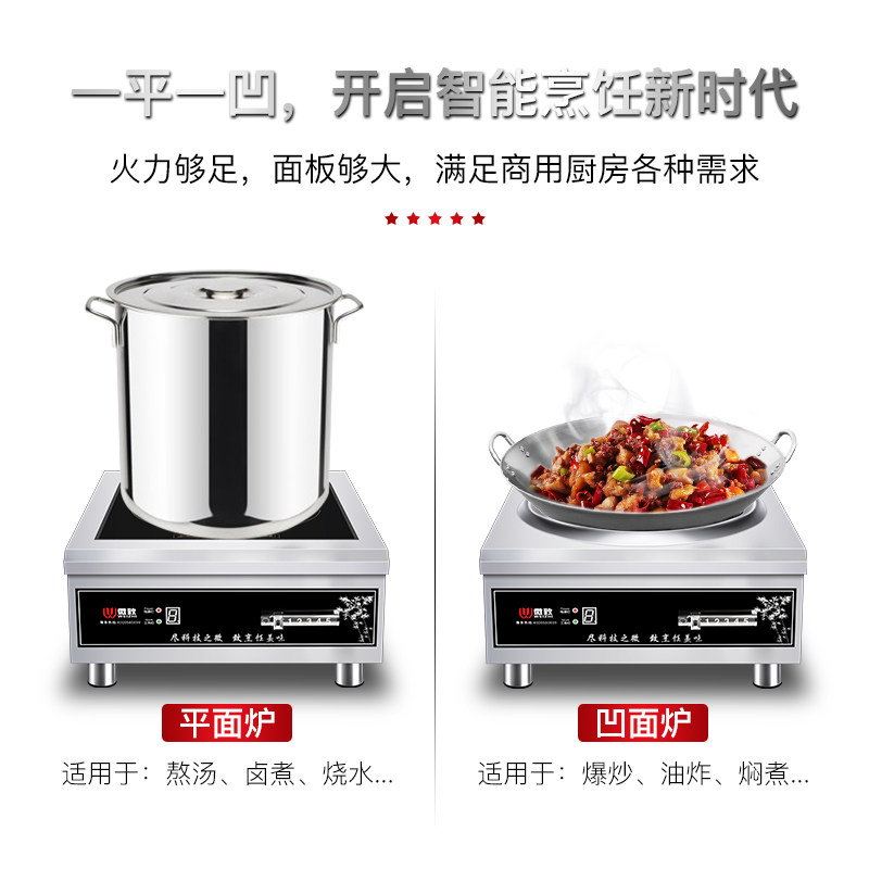 Micro-high power commercial induction cookers 6000W concave surface electric frying oven 8KW plane canteen small frying pan stove 380V