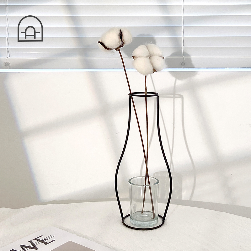 Cotton white cotton pollen iron art vase brown bottle Turtle back leaves full shop full of two ha