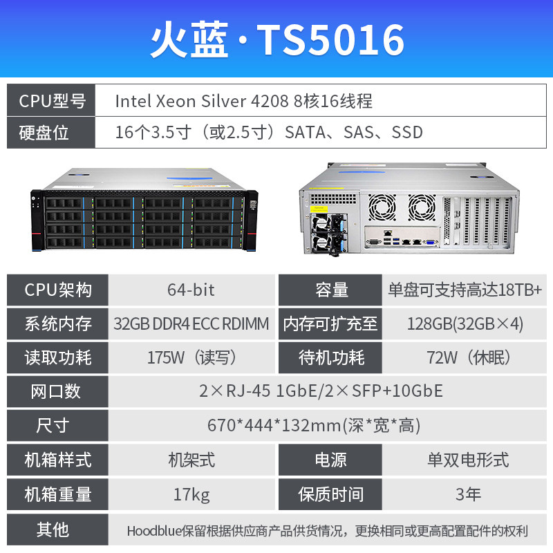 Hoodblue Fire Blue Storage TS5016 Nas Storage Server 3U Rack Network Memory 16 Disc Video Clip Big Data Backup Augmentation Device