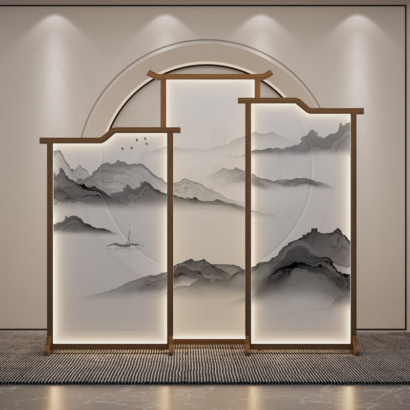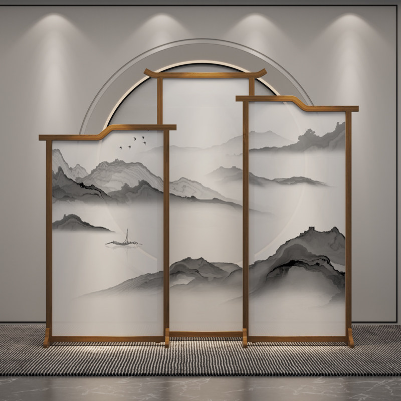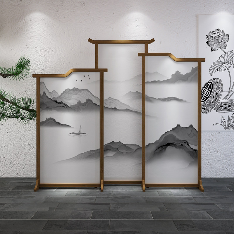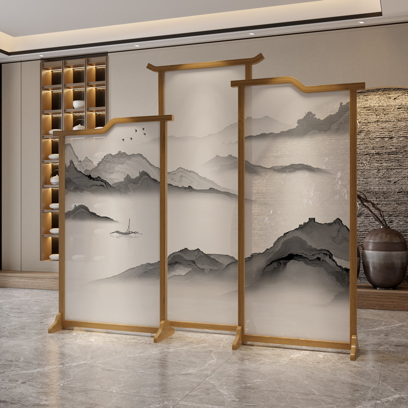 New Chinese-style screen partition living room modern minimalist mobile Zen tea room office porch blocking solid wood seat screen
