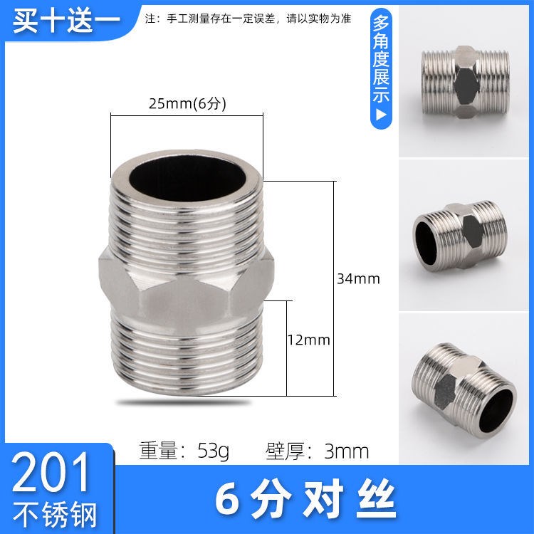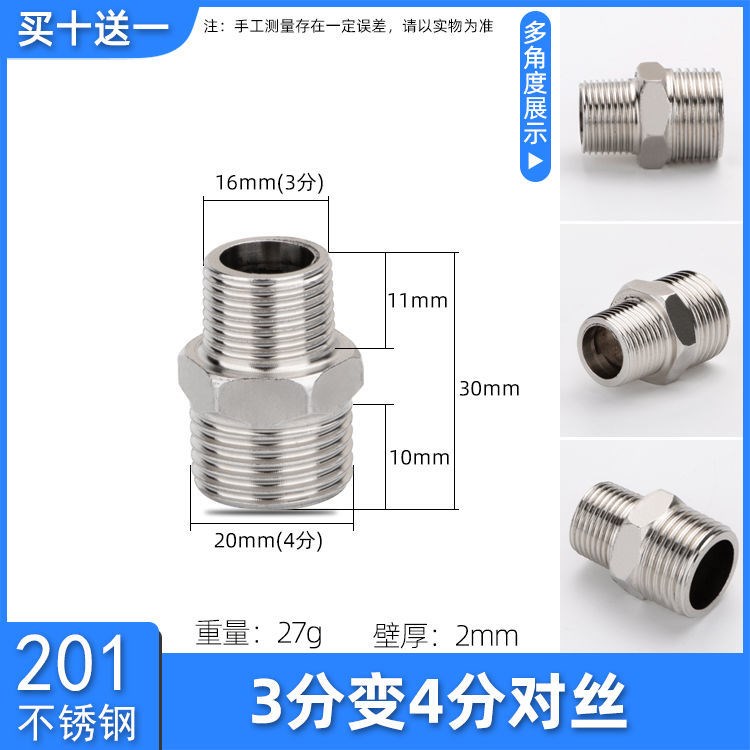 Stainless steel pair wire joint variable diameter double outer wire directly lengthened by 2 minutes to 3 minutes to 4 minutes to 6 minutes to 1 inch water pipe fittings
