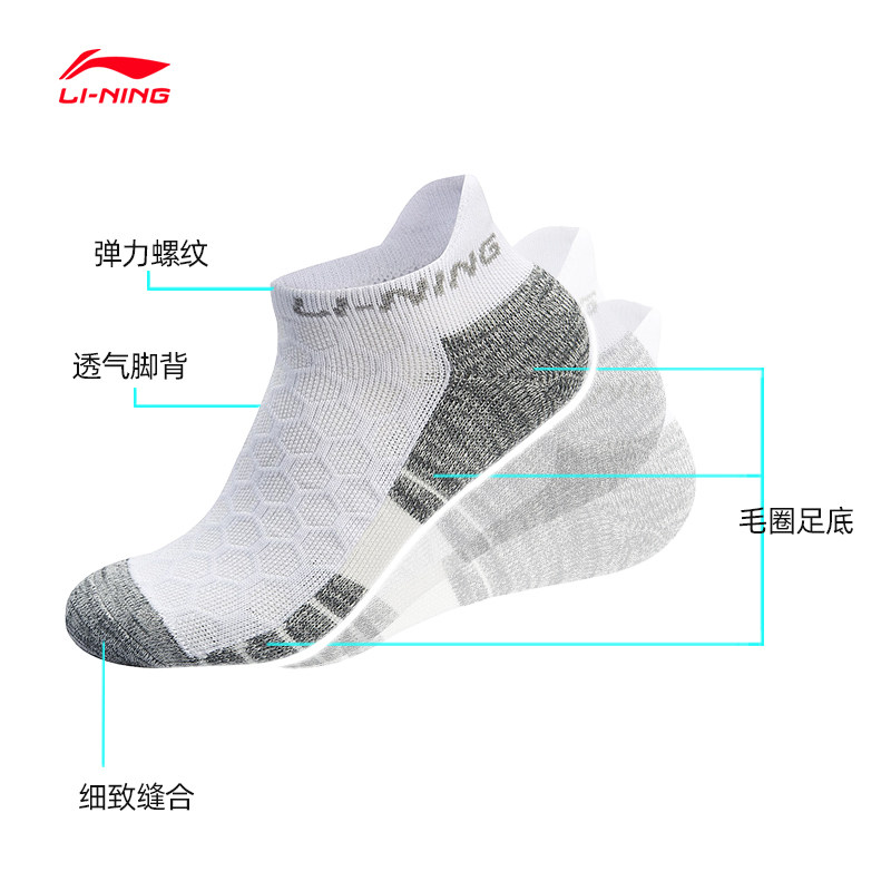 Li Ning Towel Bottom Male Socks Short Socks Sports Cotton Socks Midcylinder Thickened Badminton Basketball Running Suction Sweat Socks