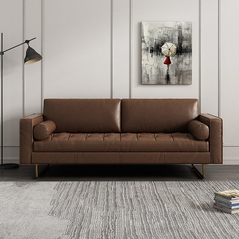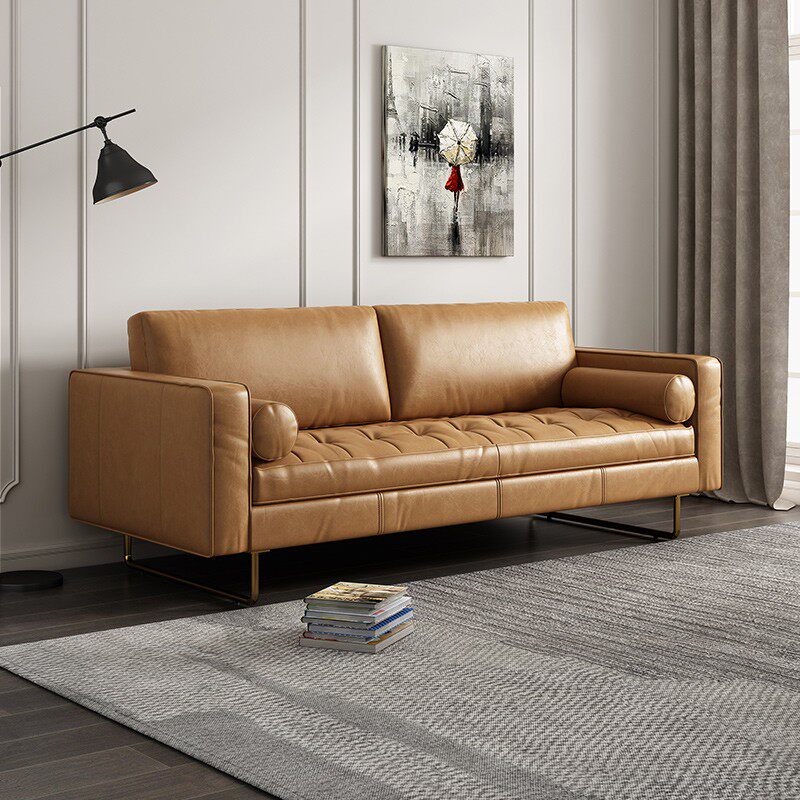 Medieval light luxury leather sofa modern minimalist small apartment living room retro wabi-sabi limelight leather three-person sofa