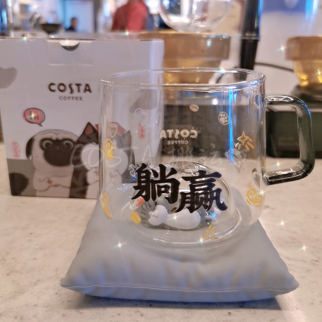 costa × wu Real ten thousand Sleeping Cat Discoloration Glass Cup Coffee Cup Milk Cup Office Tea Cup Gift Box Loaded Spot