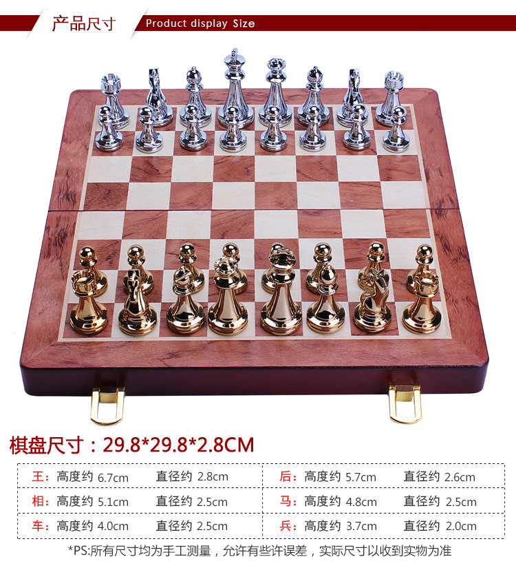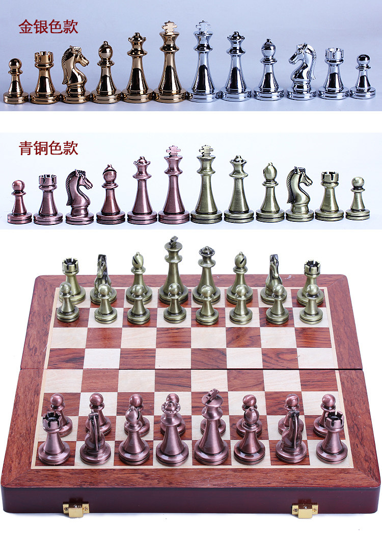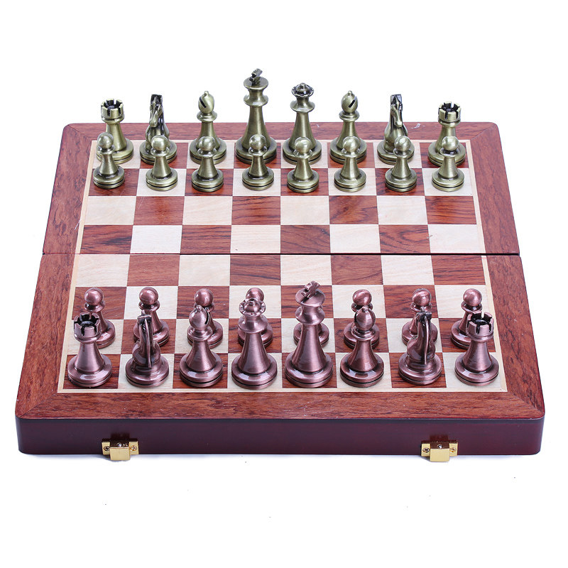 Metal Chess Alloy Silver Heavyweight Piece Solid Wood Folding Chessboard Premium Gift Box Set Vintage Ornament