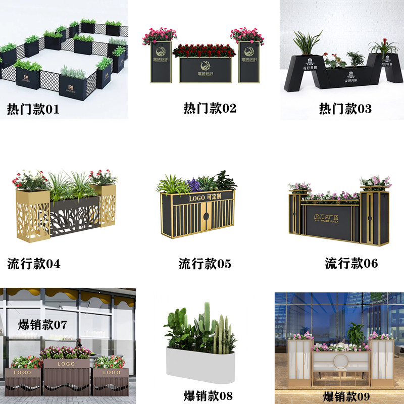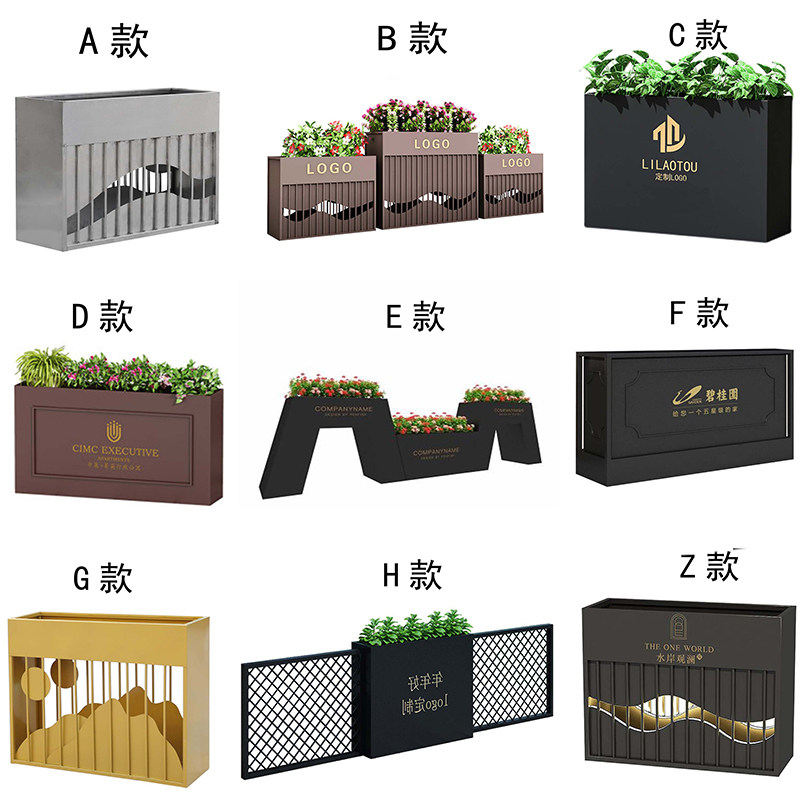 Stainless steel outdoor wrought iron flower box combination flower bed sales department commercial square flower trough tree box fence flower bowl customization