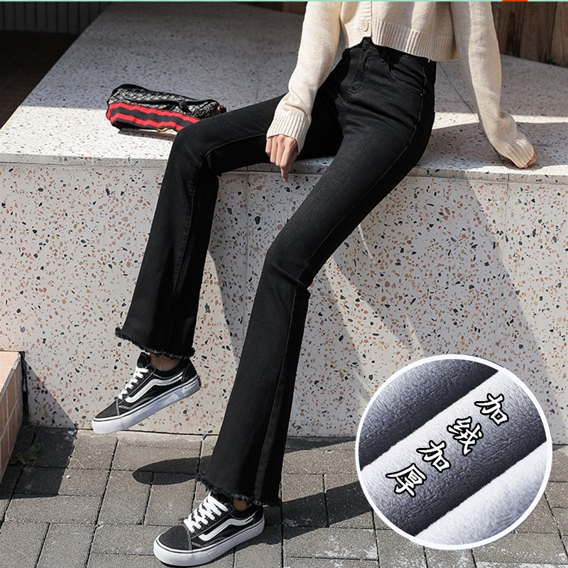 Black Micro Horn Jeans Female Autumn Winter Plus 2021 New conspicuously tall and luxurious and luxurious broadlegged trousers