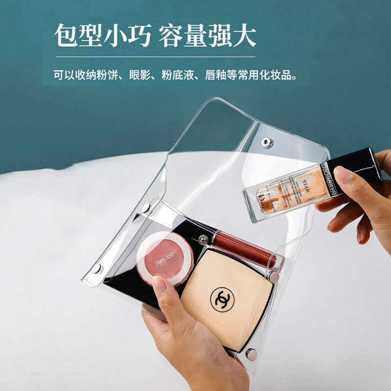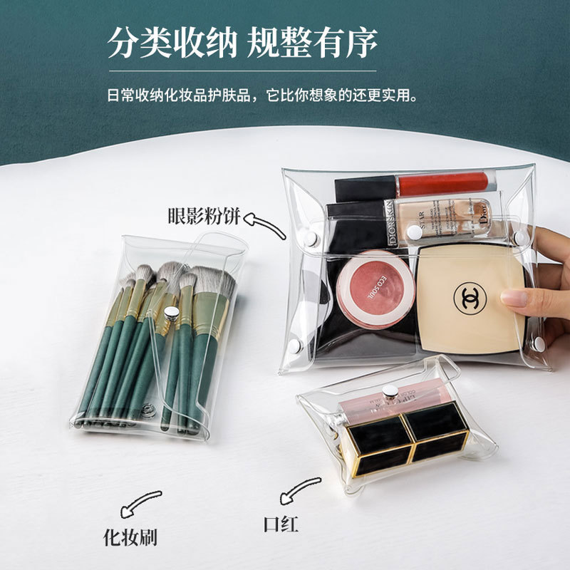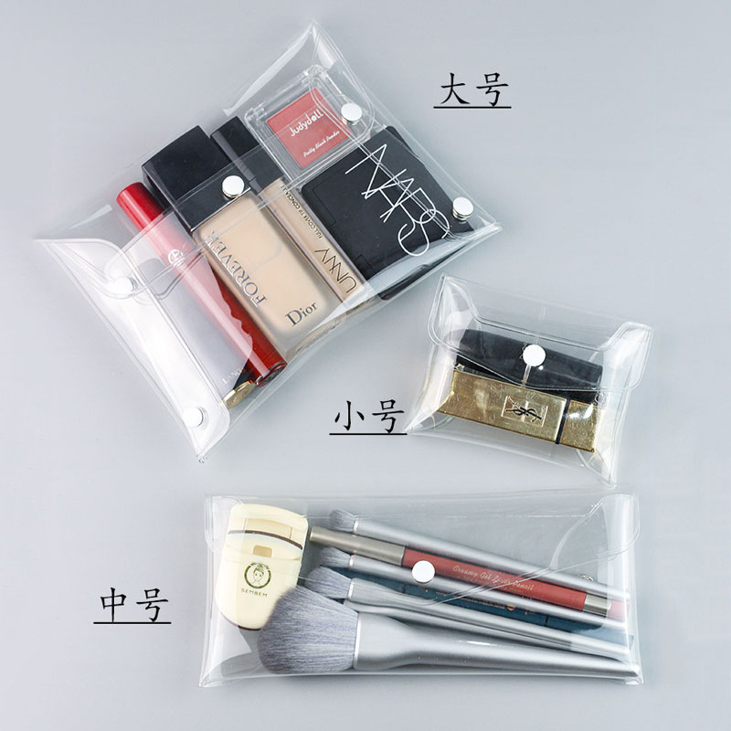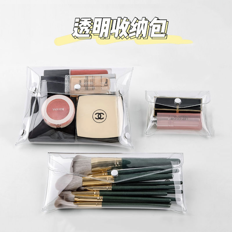 ins wind pvc transparent by buckle makeup brushed lipstick red cosmetics stationery transparent pen bag travel poop style containing bag-Taobao