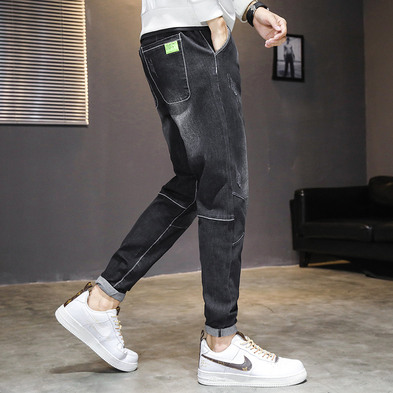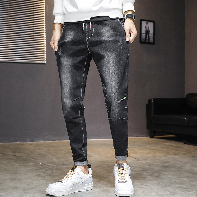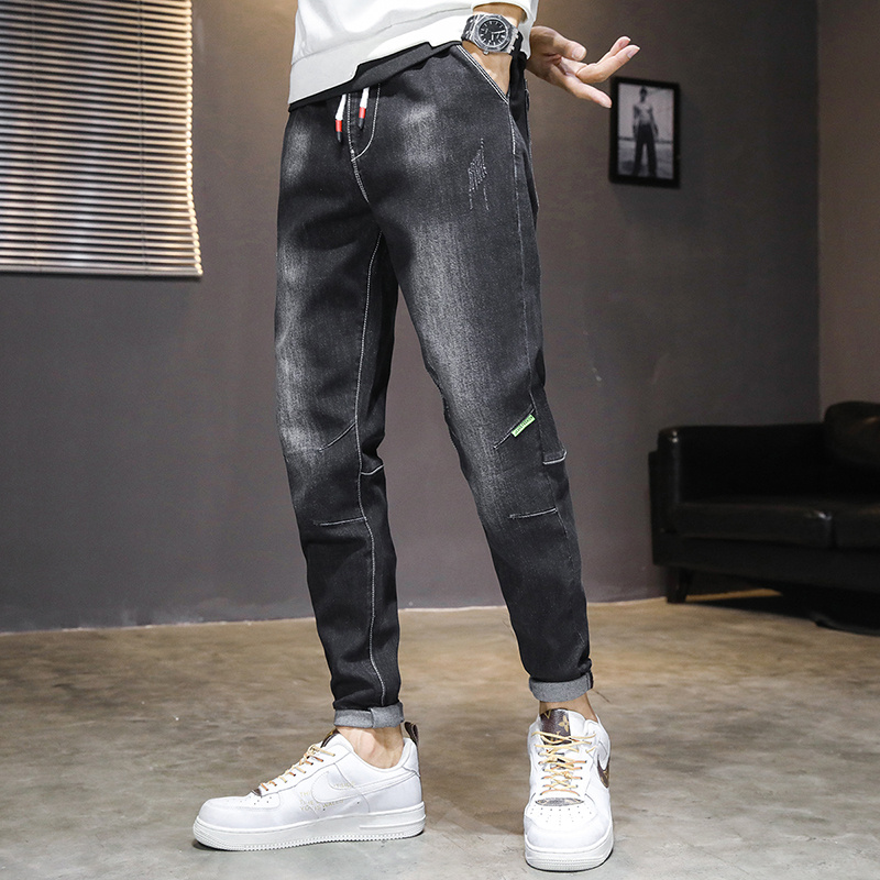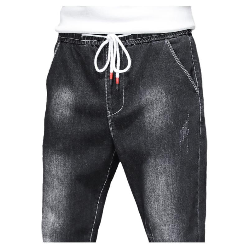 Men's Jeans Men's Drawstring Casual 2022 New Summer Slim Fit Feet Straight Elastic Waist Long Pants Men