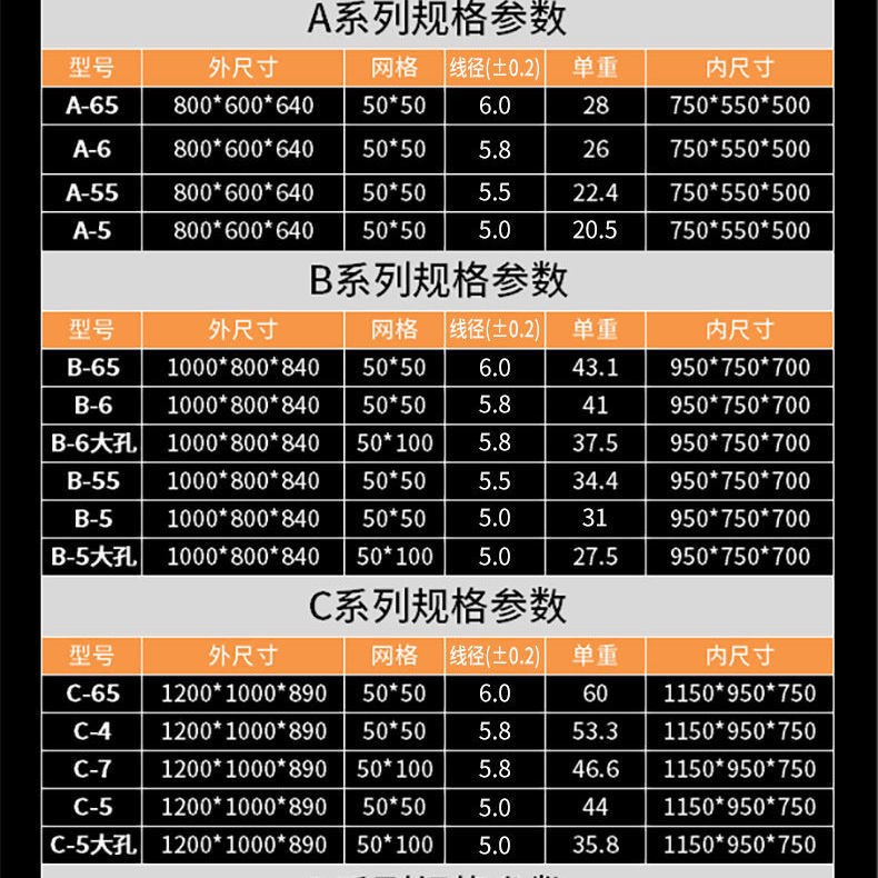 800*600*640 without wheels 1000*800*840 without wheels 1200*1000*890 without wheels 1500*1100*1100 without wheels 80