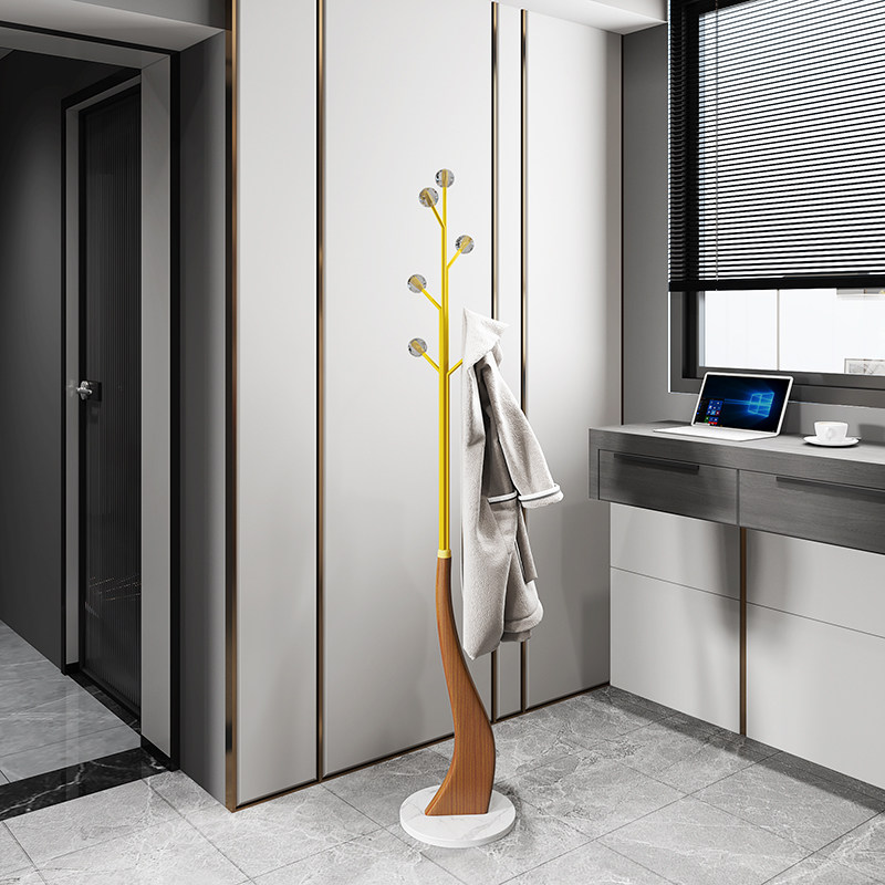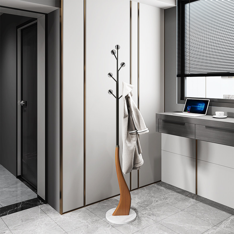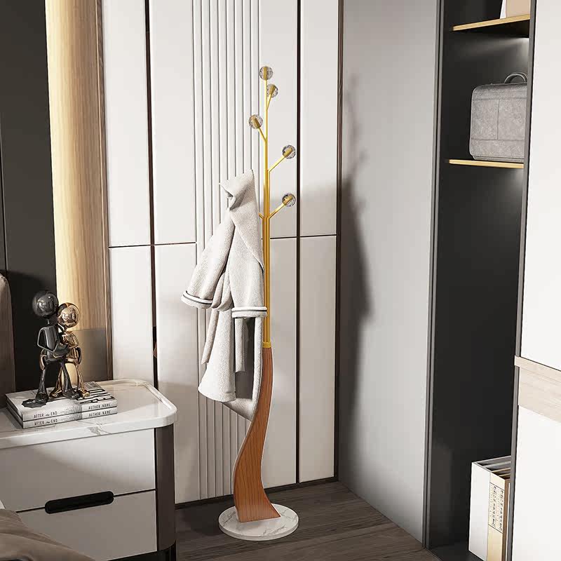 New Chinese style single-pole coat rack floor-to-ceiling light luxury bedroom office art storage solid wood vertical hanging clothes rack