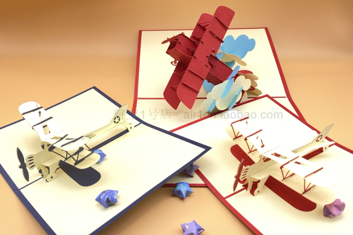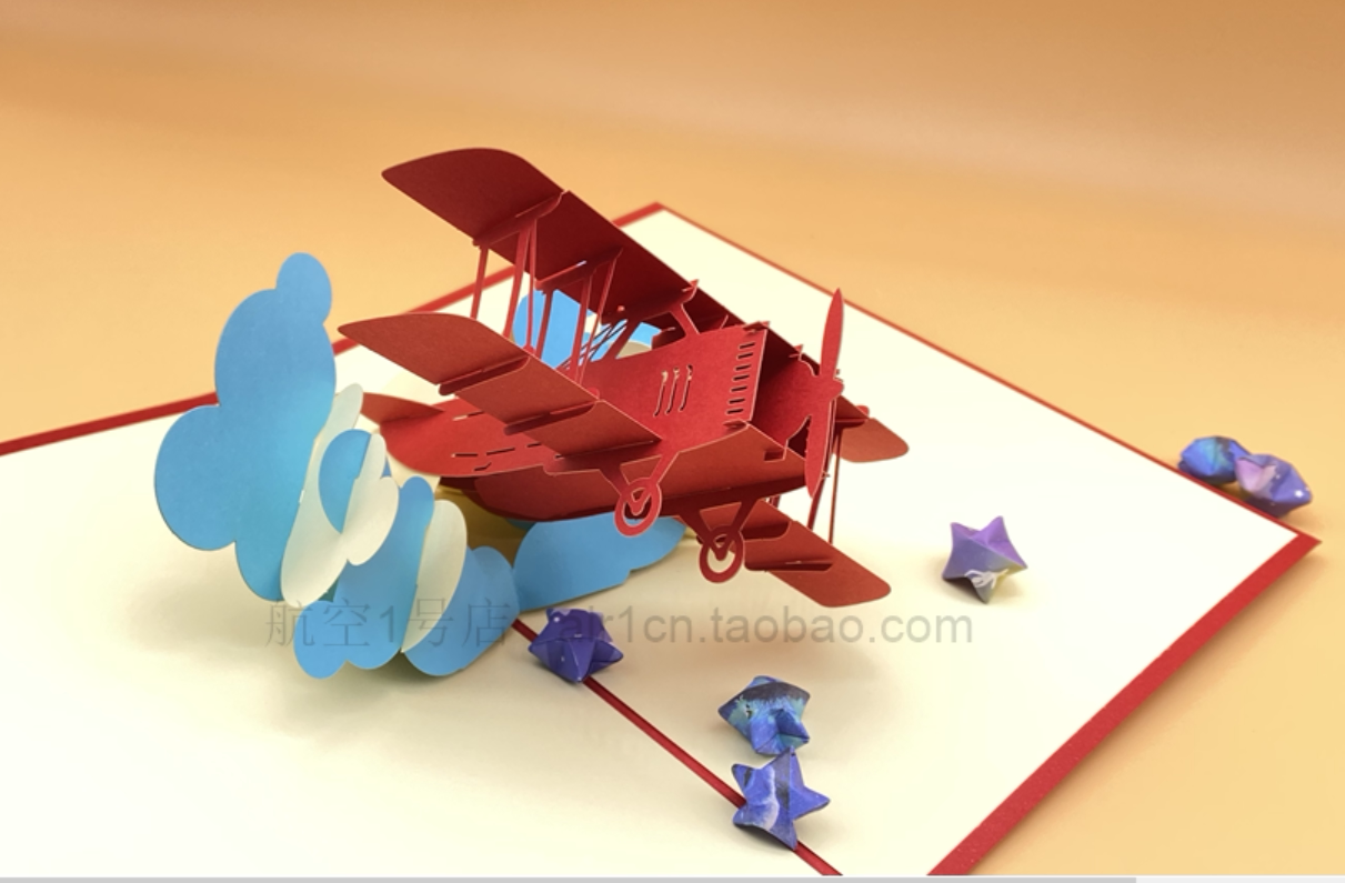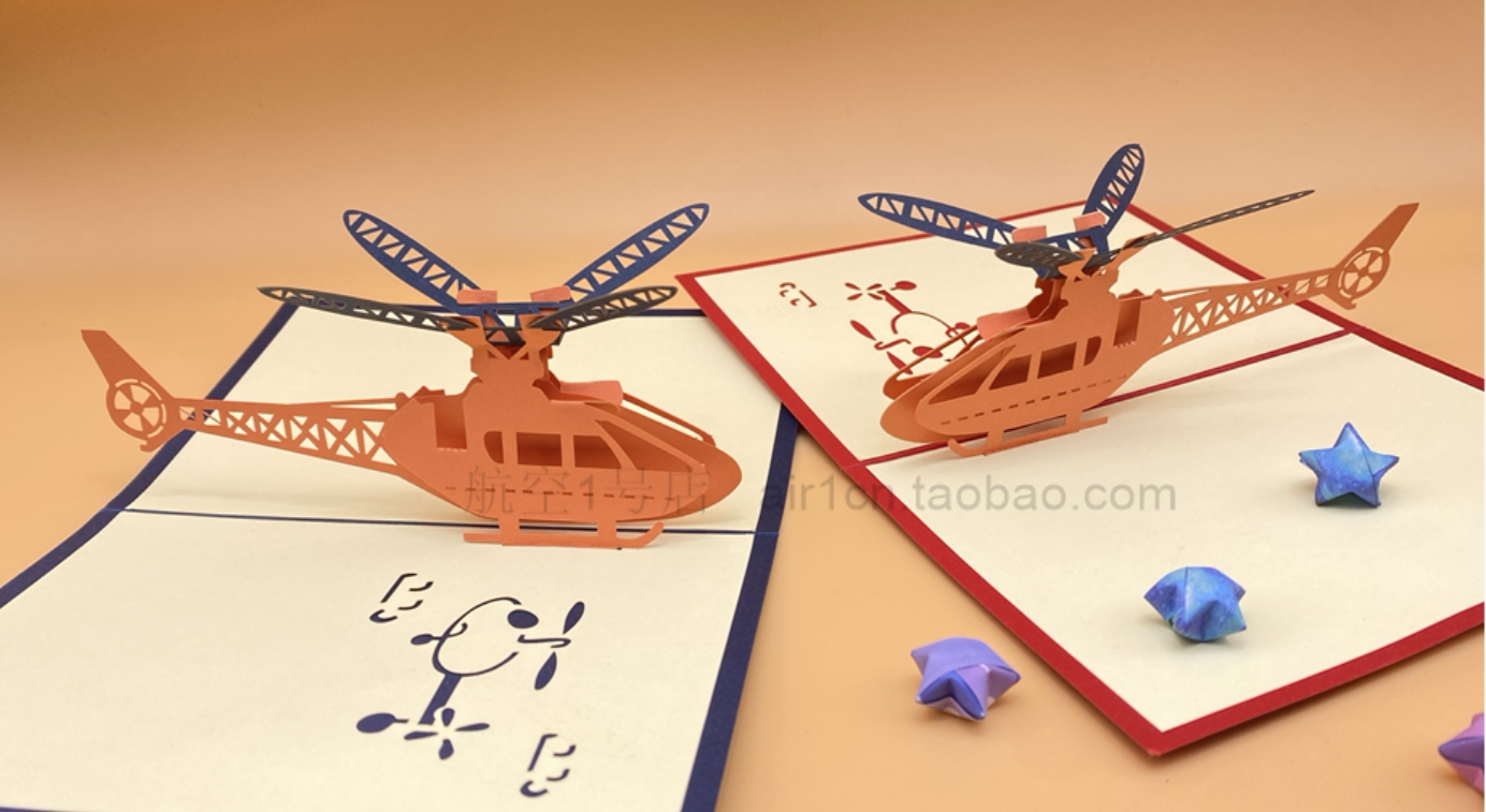 3d paper-cut civil aviation aircraft helicopter greeting card birthday card gift card card