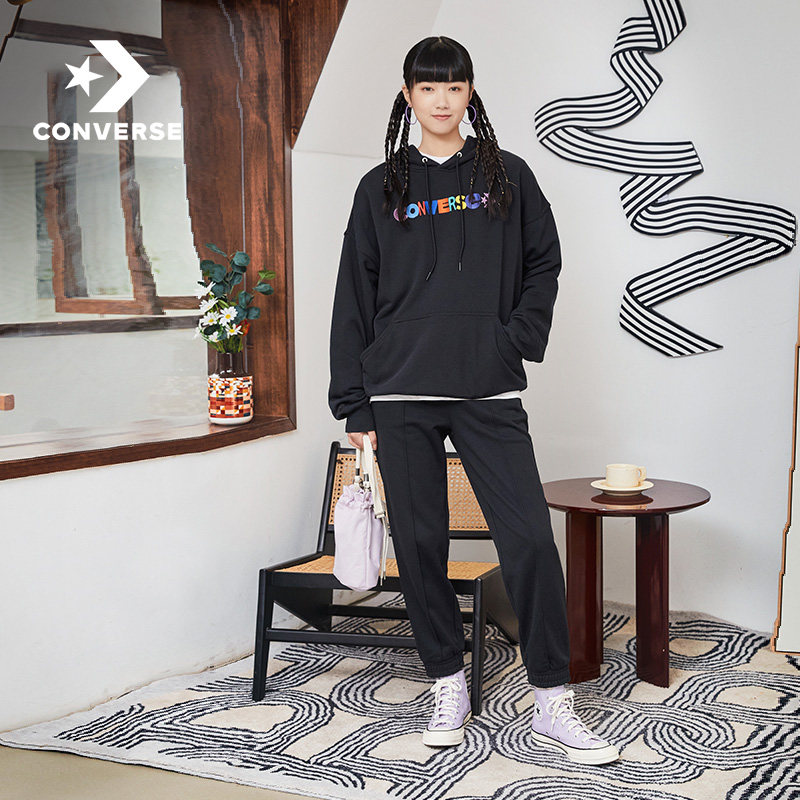 CONVERSE Converse Official Coloured Alphabet Knitted hoodie fashion thick T-shirt Twilight purple 10023947