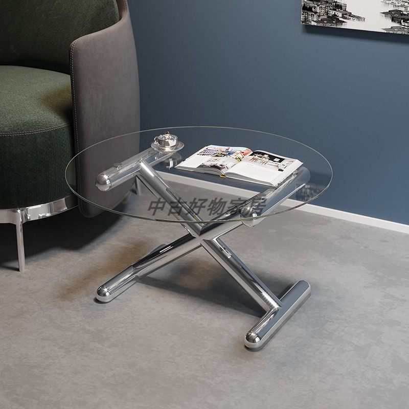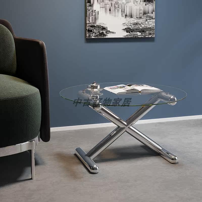 New Koons balloon dog designer coffee table small apartment light luxury modern minimalist metal round glass ins