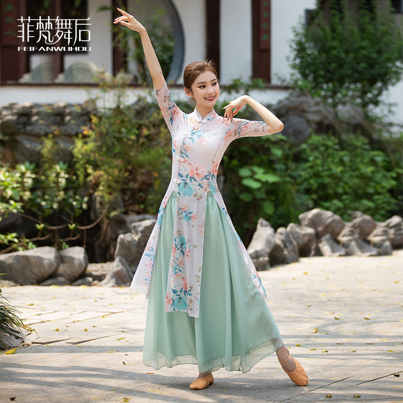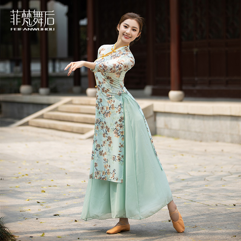 Fivan Dance Postmodern Dance Practice Martial Pants Chinese Classical Dance Performance Out of the Fluffy Dance Sky Silk Broadlegged Pants