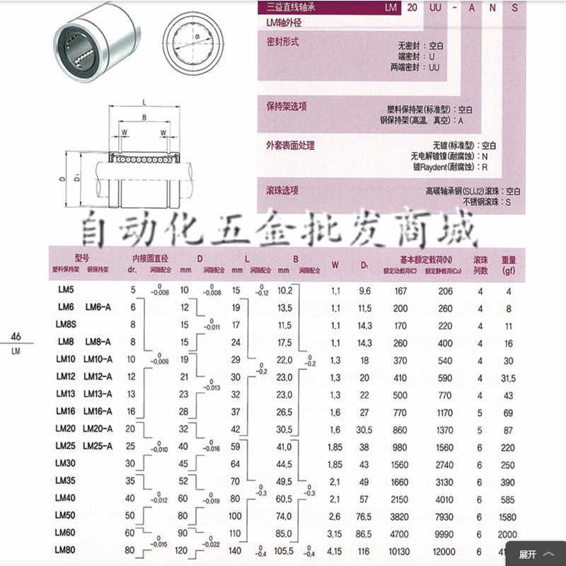 LM3 LM3 LM4 LM5 LM8 LM8 LM10 LM13 LM13 LM16U LM16U LM16U precision linear bearings