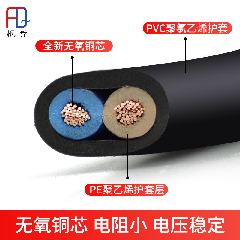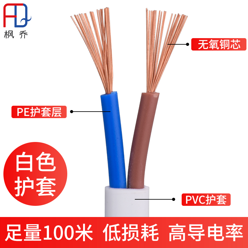 Pure copper RVVB flat line jacket power cord 2 core 0 75 1 1 5 0 home monitor Soft cable