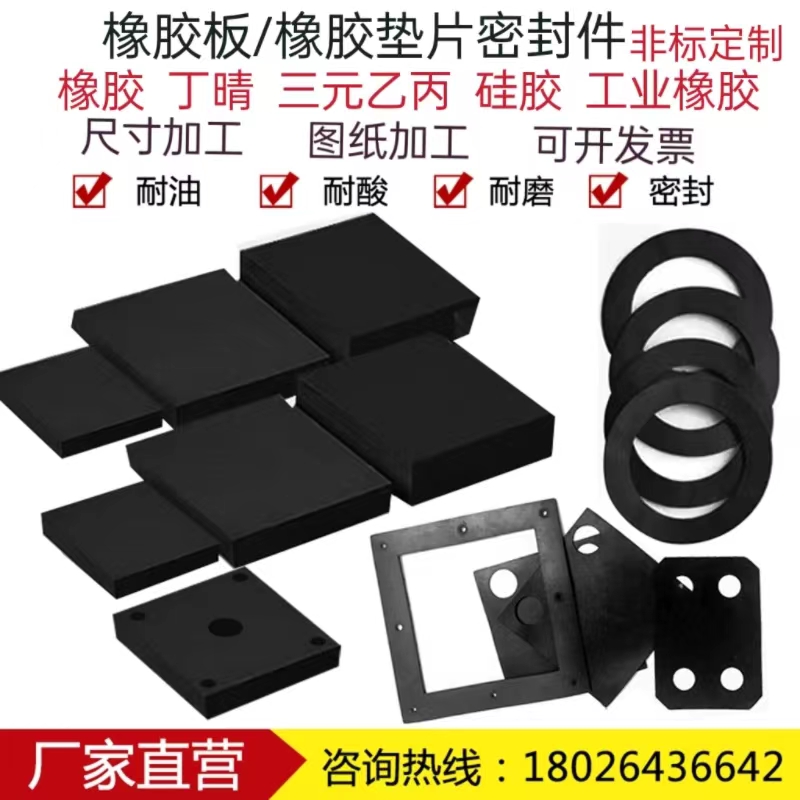 Black shock absorbing rubber mat block high temperature resistant Ding clear rubber gasket Machinery industrial rubber plate punching machining-Taobao