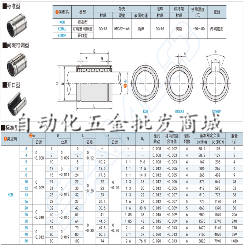Straight bearing straight column type KCM gap adjustable KCMAJ opening KCMOP internal diameter -3 4 5 6 8 10