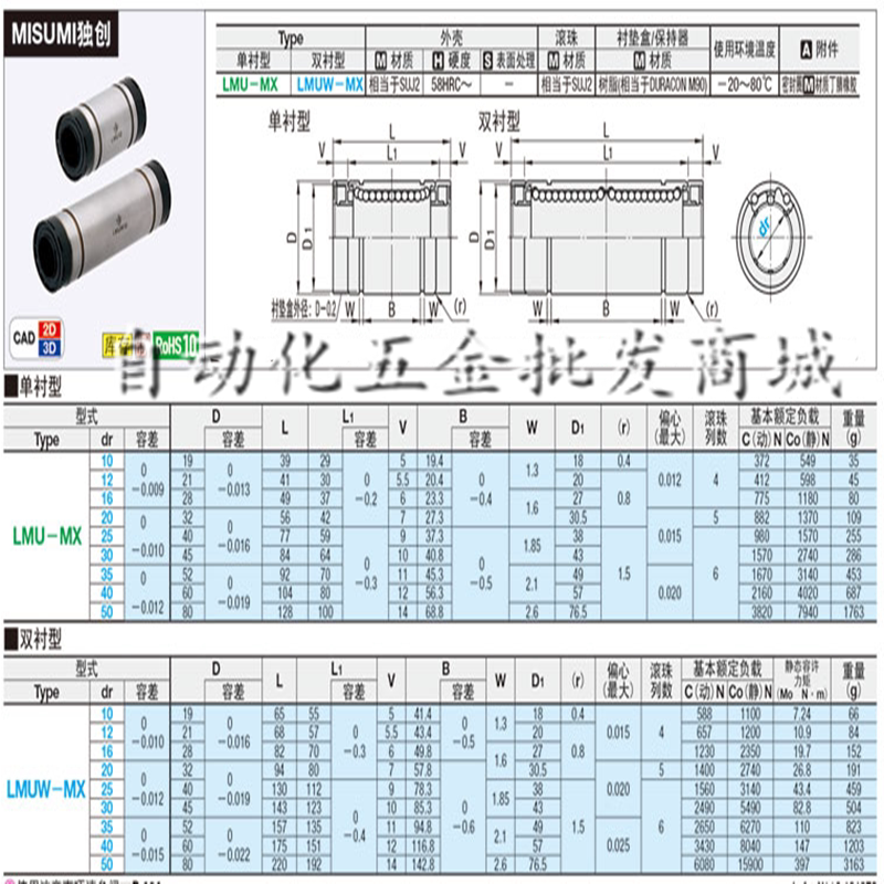 Linear bearings LMU LMUW LHFR LHFRW-MX 10 12 12 16 20 25 30
