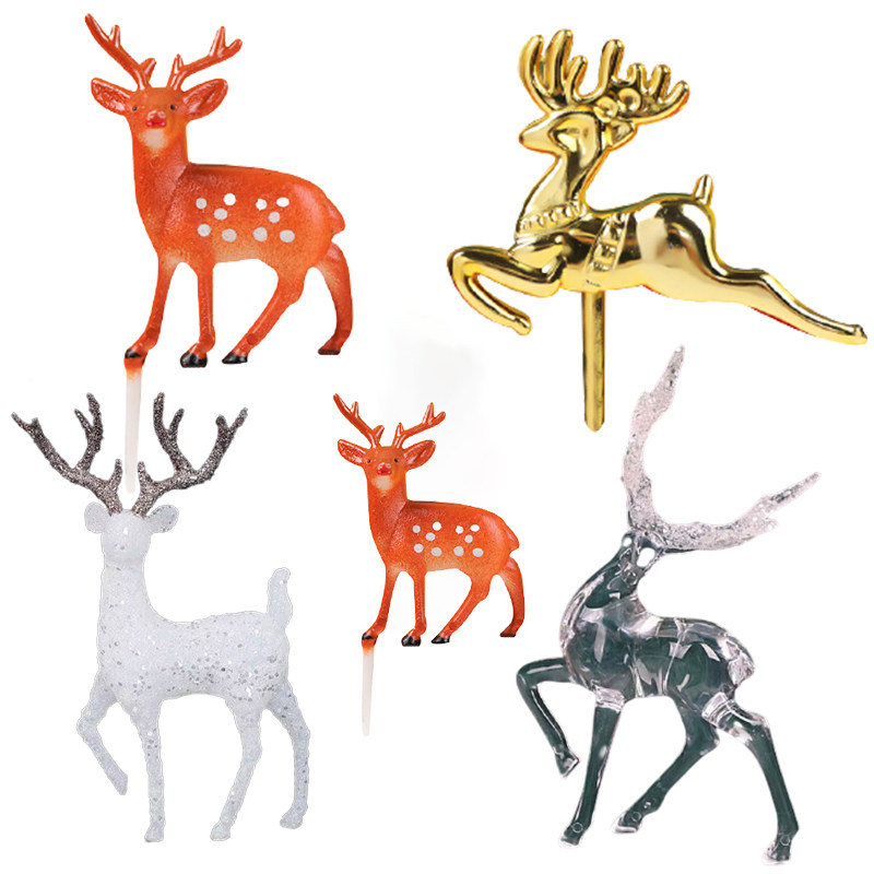 Christmas Gold Small Deer Cake Decoration Plugin Crystal Elk Deer Plum Blossom Deer Grass Circle Snowman Snowflake Baking Pendulum