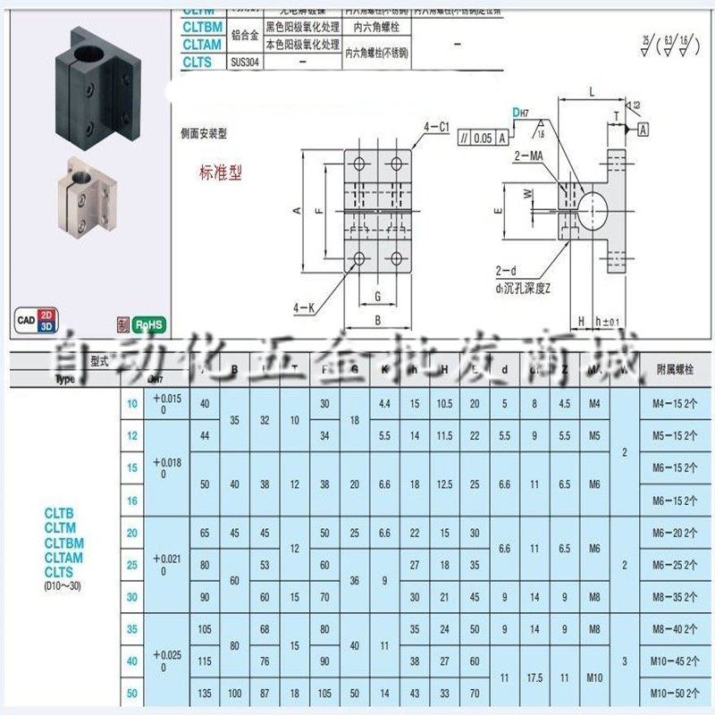 Base with bracket CLTB CLTS CLTS CLTM10 12 15 15 20 20 25 30 40 50 50