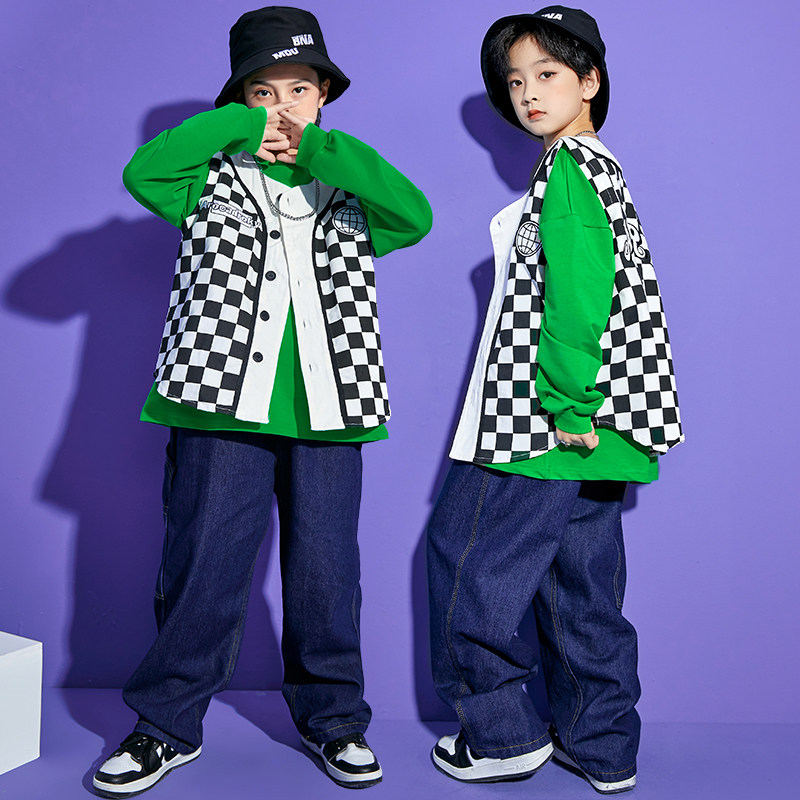 Children's hip-hop suit boys long-sleeved thick cotton T children's autumn and winter hip-hop clothing girls performance clothing tide clothing tide brand