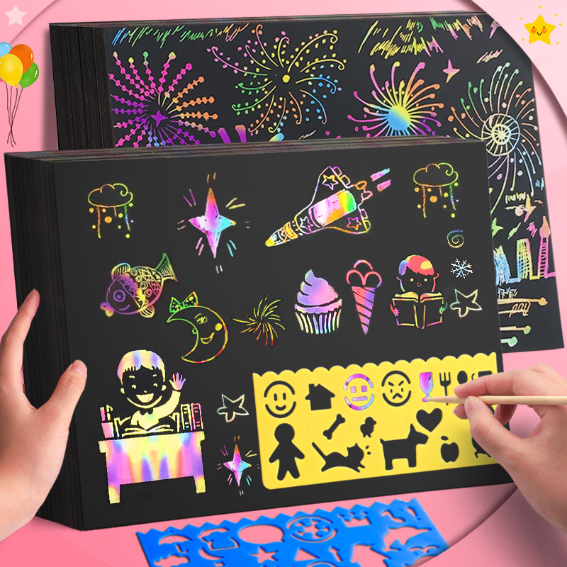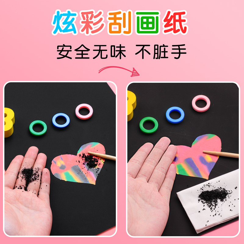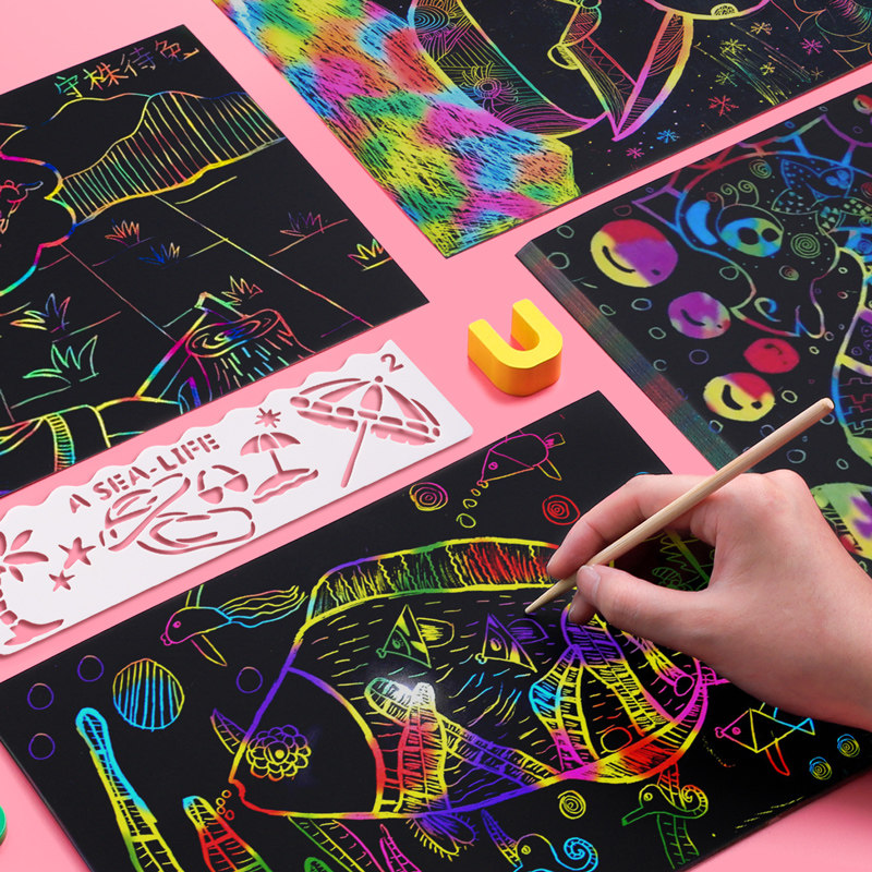 The colorful scratch paper shows color children colored pattern elementary school kindergarten 8 open monochrome a4 scratch painting set scraping painting set scraping fine art hanging painting paper bamboo pen manual 16k creativity
