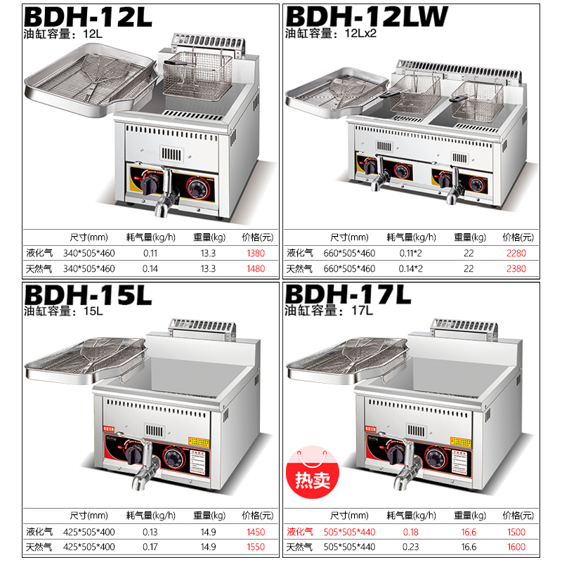 Gas Chicken Row Frying Oven Commercial Temperature-controlled Fryer Thermostatic Gas Fryer large capacity 17L Desktop Frying Oven