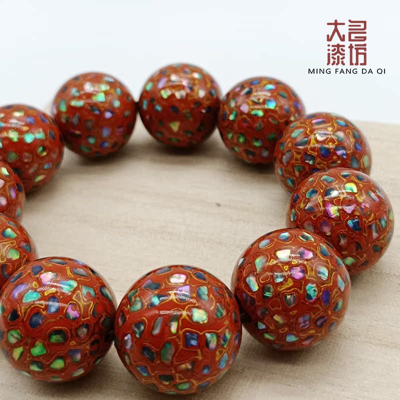 Large lacquer beads 2 0 full of mother-of-pearl small crowd bracelet hand-held rosary beads intangible cultural heritage craft Fuzhou bodiless lacquerware