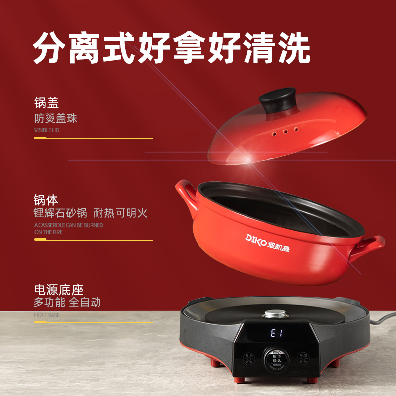 Ceramic electric hot pot multi-function cooking pot hot pot pot household can reserve two-piece automatic intelligent quick-cooking pot