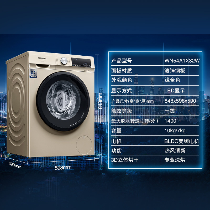 Siemens washing machine household silent automatic 10KG kg drum washing and drying integrated WN54A1X32W