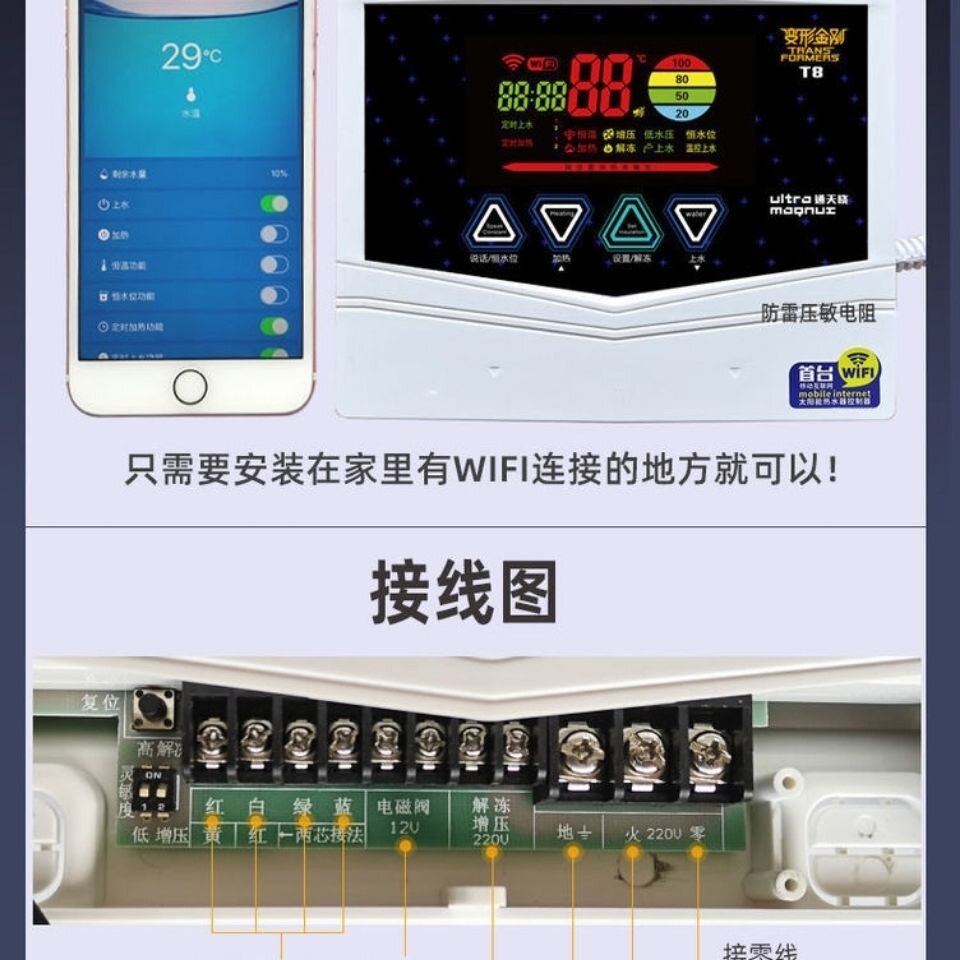 Mobile phone WIFI wireless smart meter solar water heater controller with voice temperature-controlled instrument remote control instrument