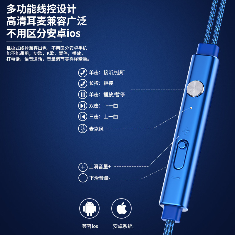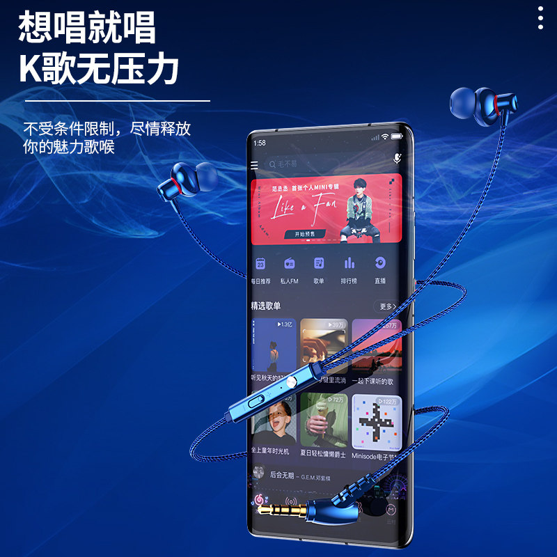 Nylon rope braided wire braided cloth wired with wheat earphones in-ear durable wear-resistant strong thick line running sports