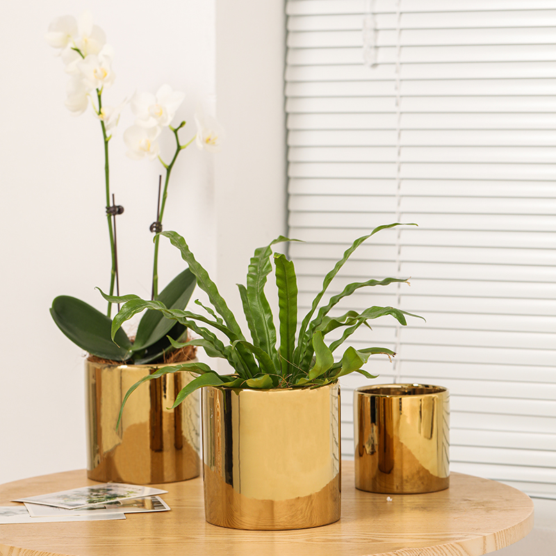Butterfly Lanter flower pots small ins Nordic minimalist ceramic with trays Plated Light Lavish Orchid Special Basin Golden Flower Pots