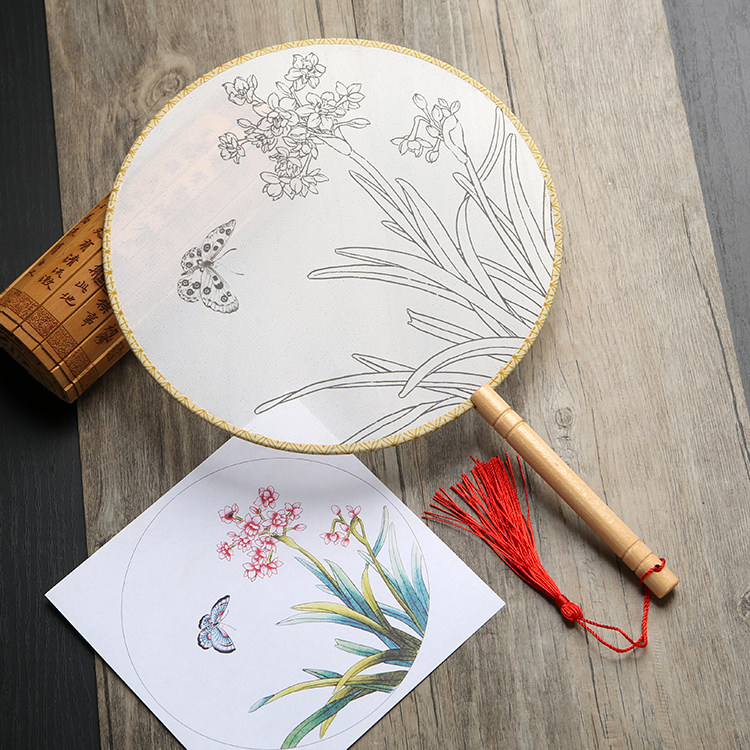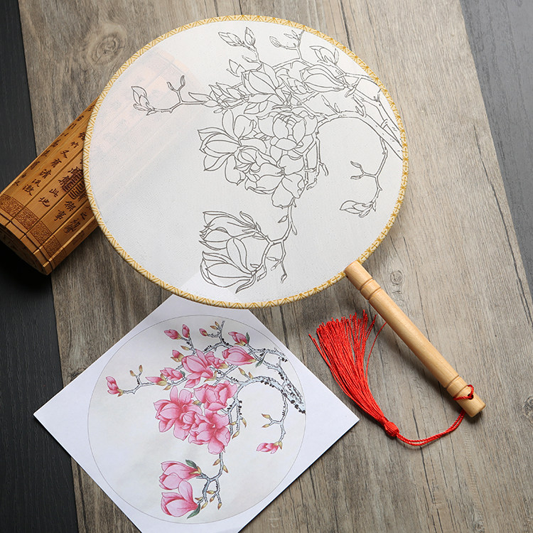 diy meticulous hand-painted group fan round silk copy coloring painting fan parent-child warm-up activity fan material package