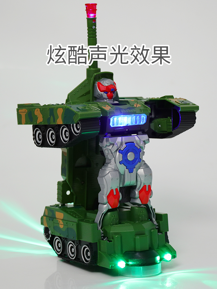 The city tank vehicle (lighting music) sends two launch bullets (random color) transformed tank vehicle (automatic obstacle avoidance) deformed tank vehicle (automatic obstacle avoidance) with light on the tail