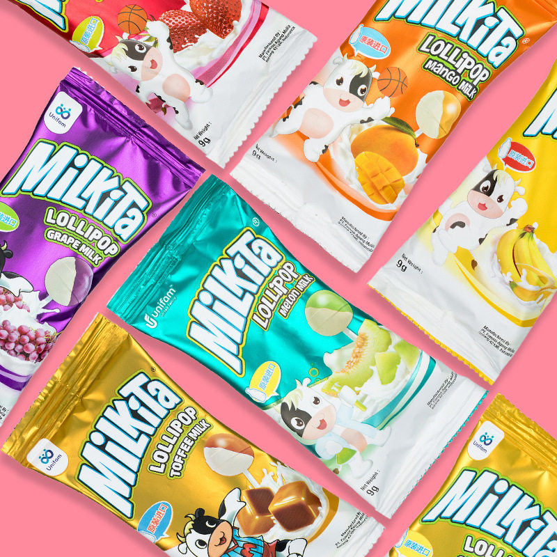 #xinsugu snacks Indonesia imported Milkita Youyoukang lollipop strawberry cantaloupe flavor 9g children's candy