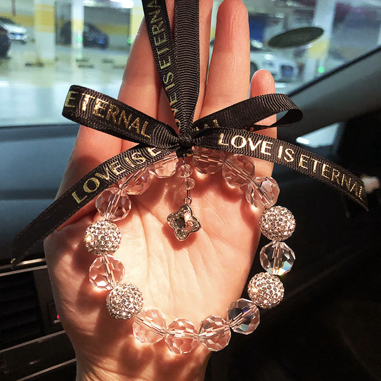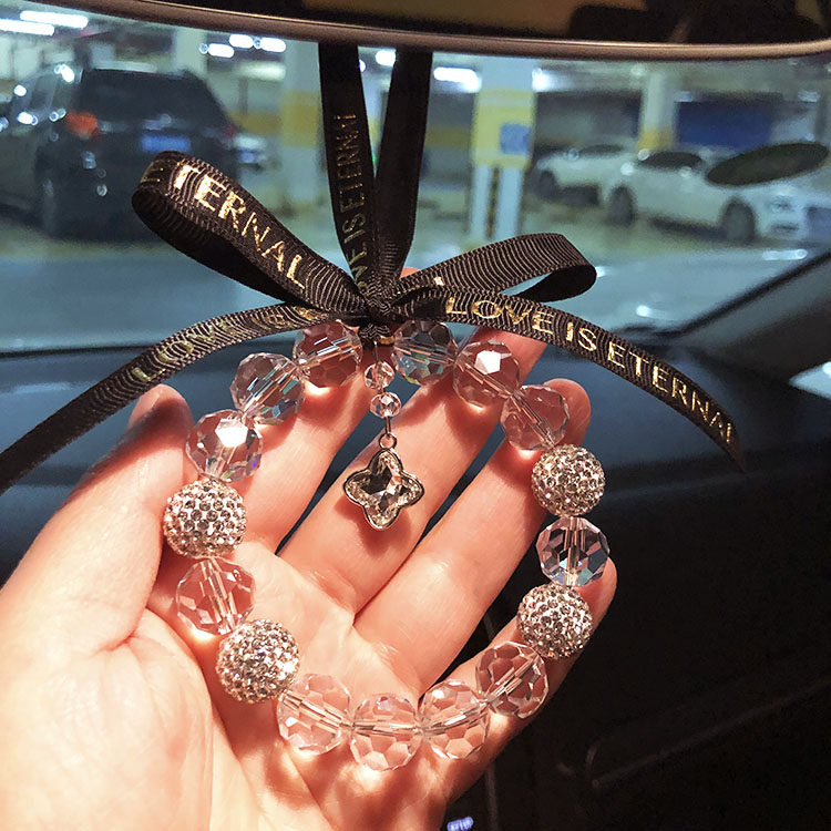Xiaohongshu with the same four-leaf clover crystal car pendant car rearview mirror pendant cold windmill pendant