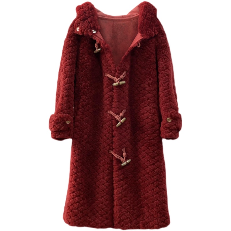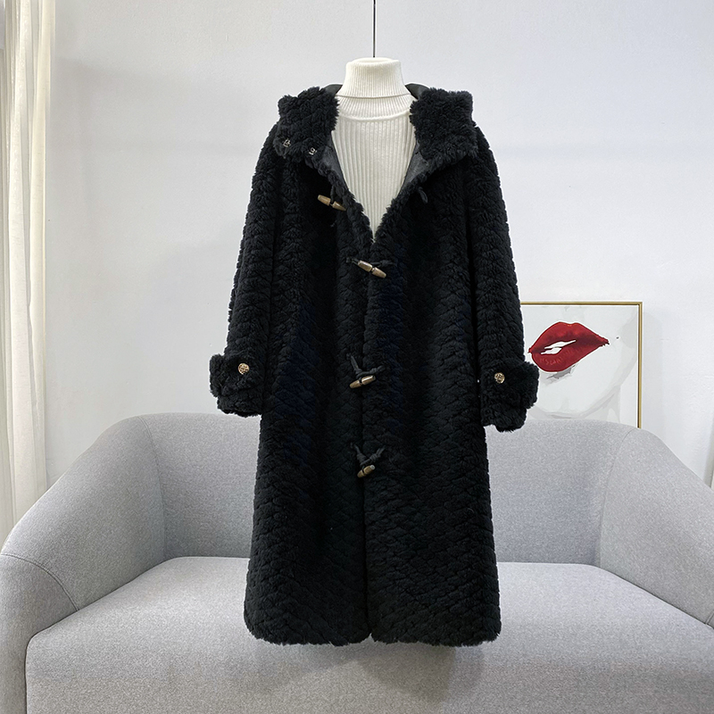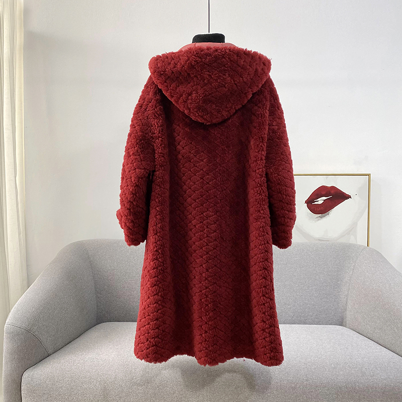 (Australian full wool) Bieger Show big size fur coat grass jacket woman 200 catty, fat mm winter sheep cut velvet big coat with cap