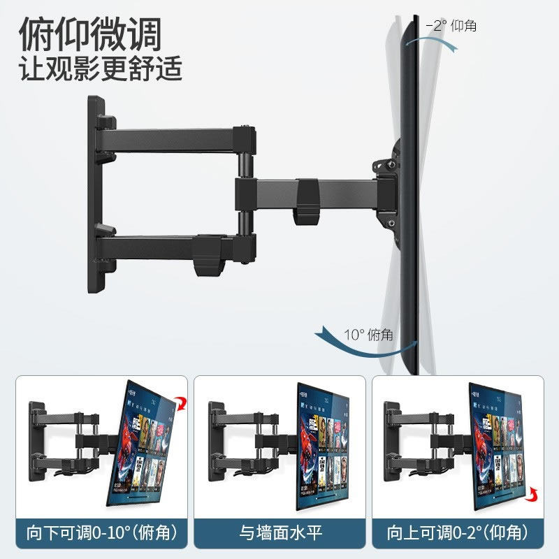(Thunderbird full model 32-50 inch universal) 180 degree rotation within 32 inches Three-arm free telescopic (Thunderbird full model 32-55 inches universal) 180 degree rotation within 40 inches Three-arm free telescopic (Thunderbird full model 32-60 inch universal) Six-arm rotation telescopic Load bearing 40KG (Thunderbird full model 32-60 inch universal) Super load-bearing Six-arm rotational telescopic (Thunderbird model 32-65 inches universal) Six-arm rotational telescopic load bearing 45KG (Thunderbird full model 32-65 inches universal) Ultra-thin wall Three-arm rotational telescopic (Thunderbird Letter full model 40-70 inch universal) Super load-bearing Six-arm telescopic rotation (Thunderbird letter full model 40-70 inch universal) Hidden harness Six-arm reinforced load-bearing (Thunderbird full model 43-80 inch universal) Super load-bearing Six-arm telescopic rotation (Thunderbird full model 43-80 inch universal) Load-bearing 60KG Three-arm ultra-thin wall (Thunderbird full model 43-86 inch universal) Load-bearing 65KG Six-arm reinforcement upgrade (Thunderbird full model 50-90 inch universal) Load-bearing 70KG Never look down, more stable and strong (Thunderbird full model 55-100 inches) load-bearing up to 120KG! 100-inch large screen dedicated