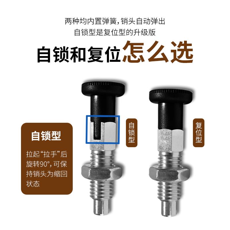 Stainless steel self-lock indexing pin carbon steel galvanized reset type knob plunger coarse tooth spring M6 M8 M8 M12 M12