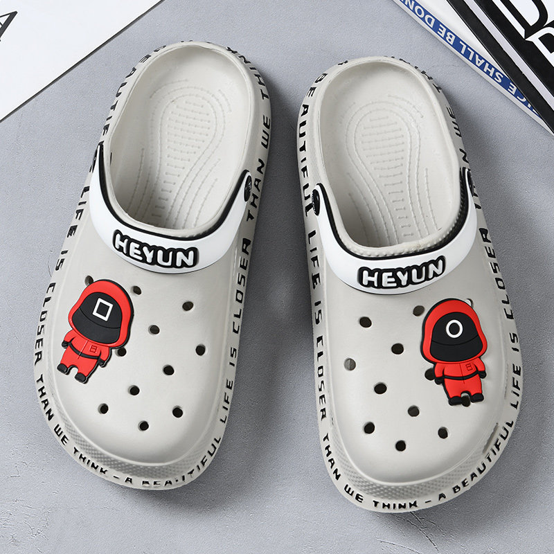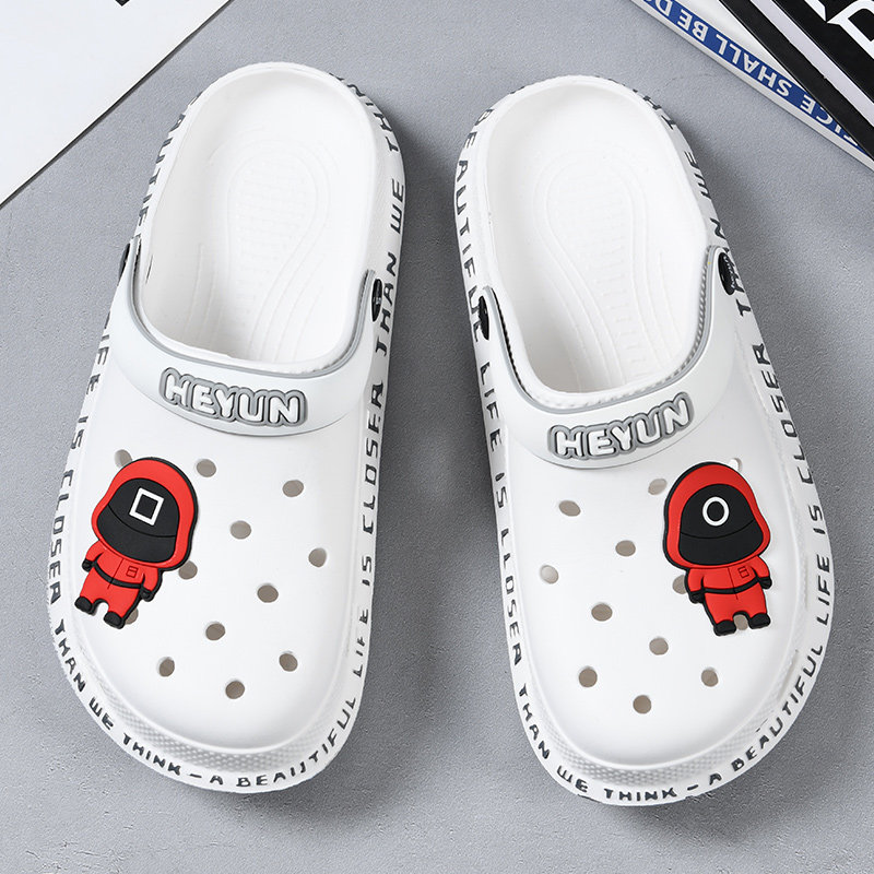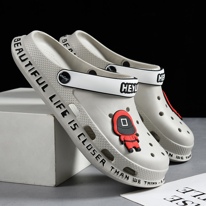 Men's hole shoes summer wear trend Korean version soft bottom non-slip dual-use sandals beach stepping shit feeling Baotou slippers